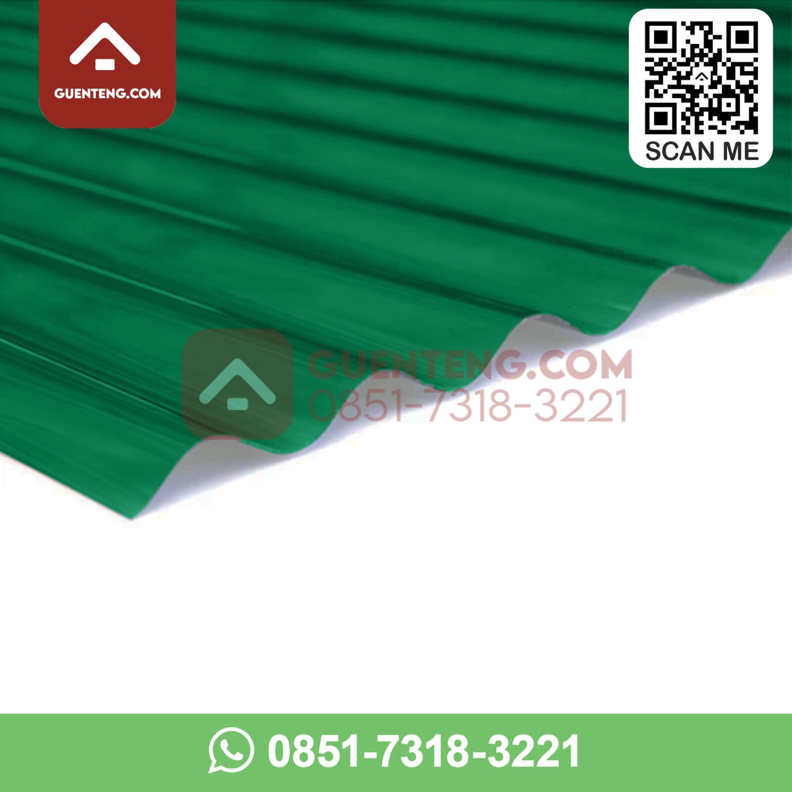 Atap Polycarbonate Solartuff Gelombang Tipe Roma Warna Hijau Green – 2.4 Meter