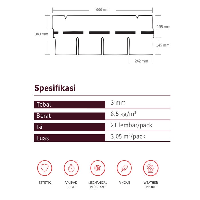 Genteng BARDOLINE- CLASSIC Rectangular (1 pack / 21 lembar) – Warna Brown