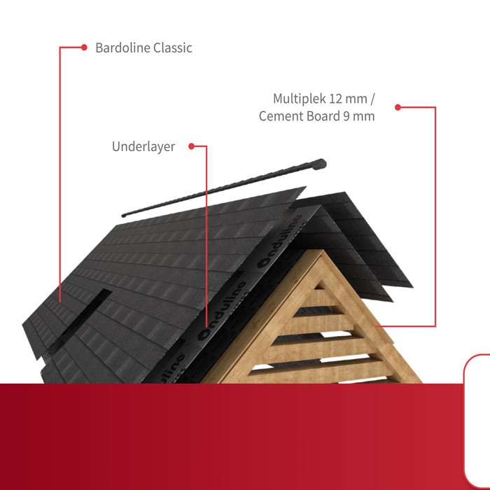The installation is quick and easy for everyone. BARDOLINE CLASSIC bitumen shingles are manufactured using specially formulated bitumen asphalt, reinforced with glass fibres and are guaranteed for 10 years.