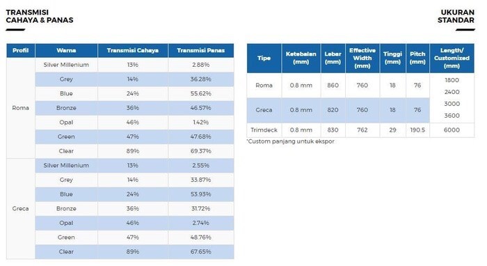 Spesifikasi Solartuff Atap Polycarbonate: