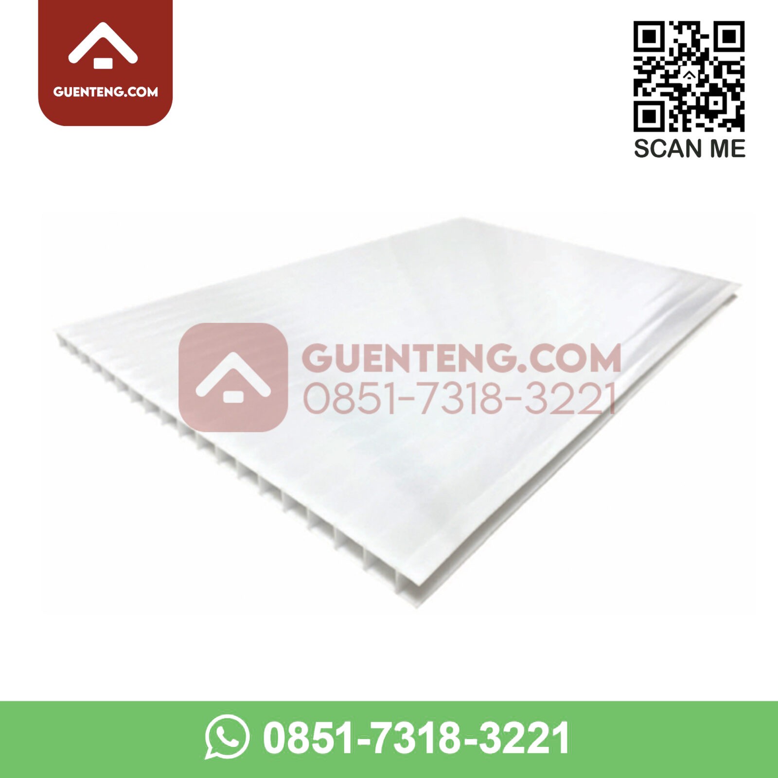 Polycarbonate TWINLITE Tebal 10mm – 1/2 Roll – Warna Putih Opal