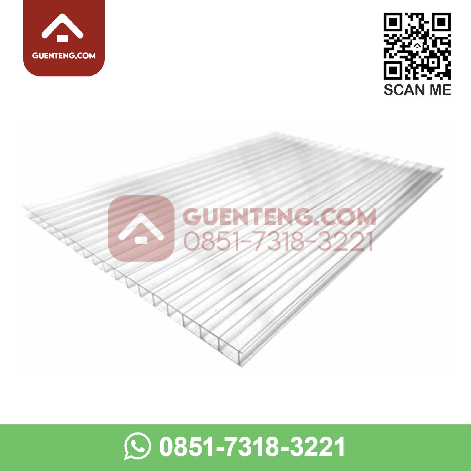 Polycarbonate TWINLITE Tebal 6mm – 1 Roll – Warna Clear Transparan